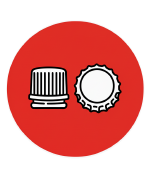 Tapas metálicas, plásticas y pilfer para botellas y frascos. Variedad de medidas y colores para cada necesidad.