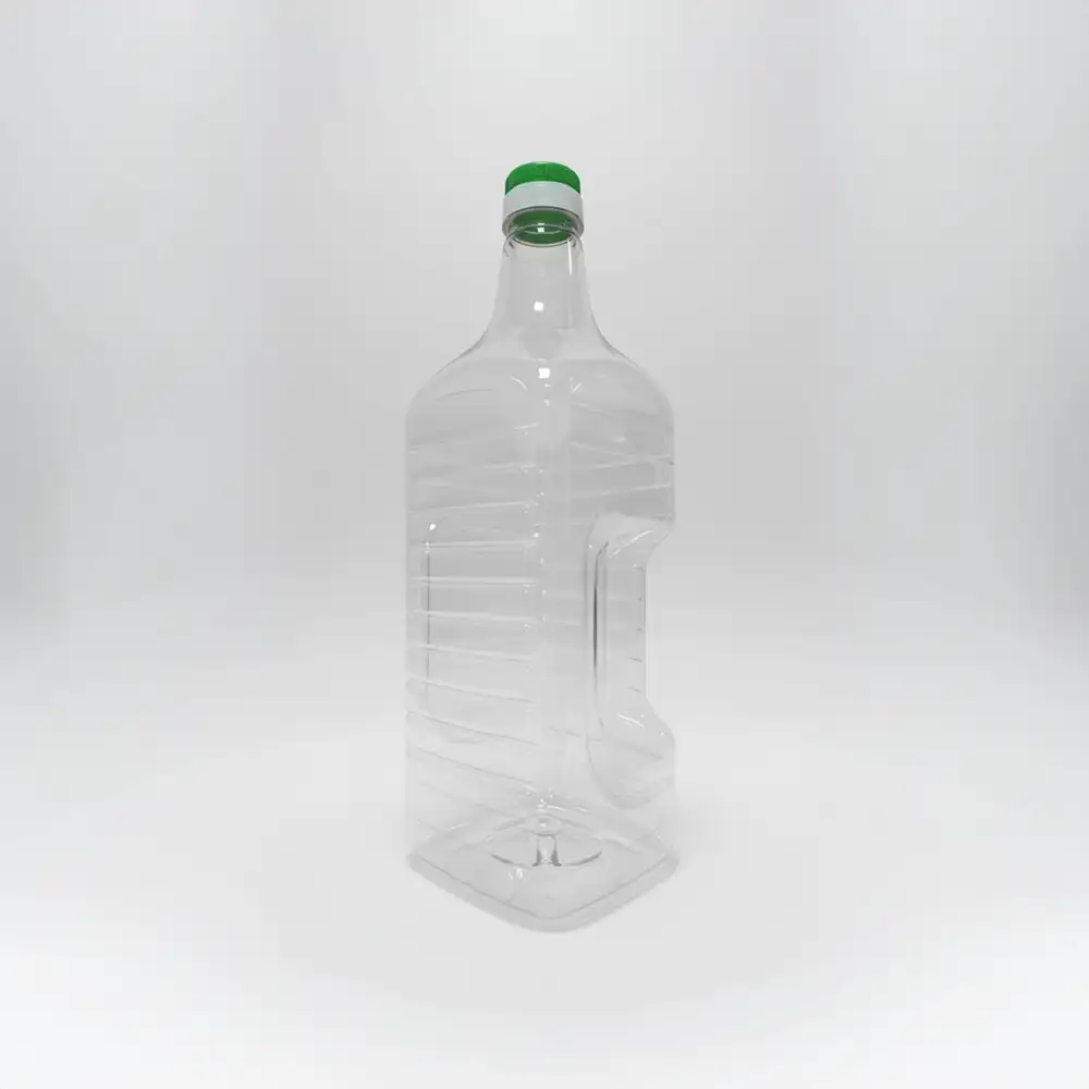Botella de alta calidad ideal para envasado y recarga de líquidos. Fabricado en PET, liviano y resistente a impactos. Diseño cuadrado para mejor apilado. Capacidad aproximada: 2 L.