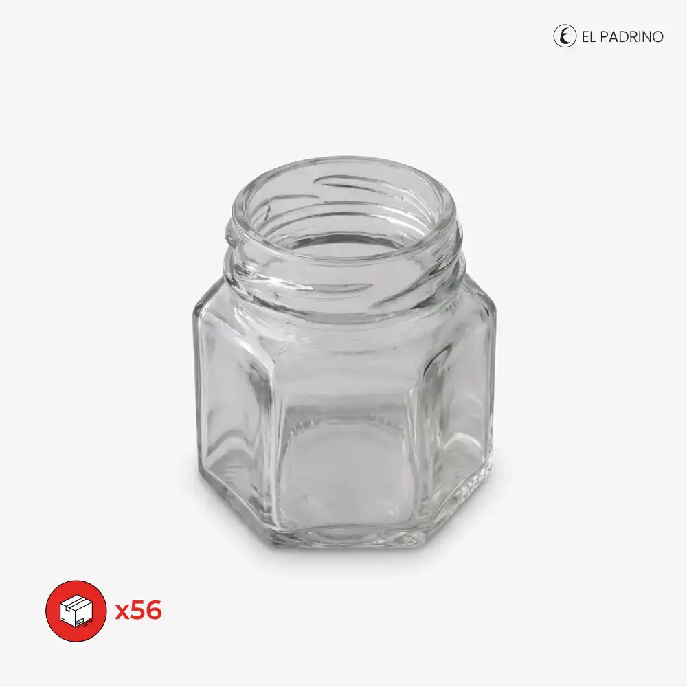 FRASCO MINIDULCE HEXAGONAL 40 de vidrio ideal para conservas y bebidas. Calidad para uso alimentario.