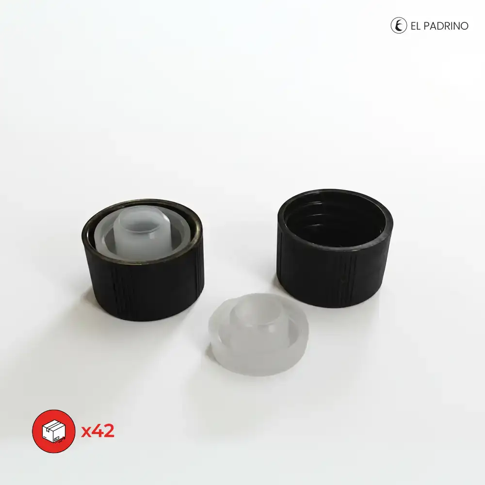 Tapa plástica de alta calidad para uso alimentario y general. Especial para botellas de esencia.